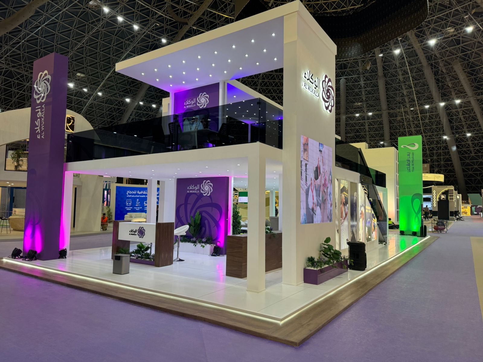 RiseUp designed and executed Al-Wukalla’s exhibition booth at Hajj Expo 2025, creating a welcoming and elegant space that reflected the company’s dedication to serving pilgrims with innovation and care